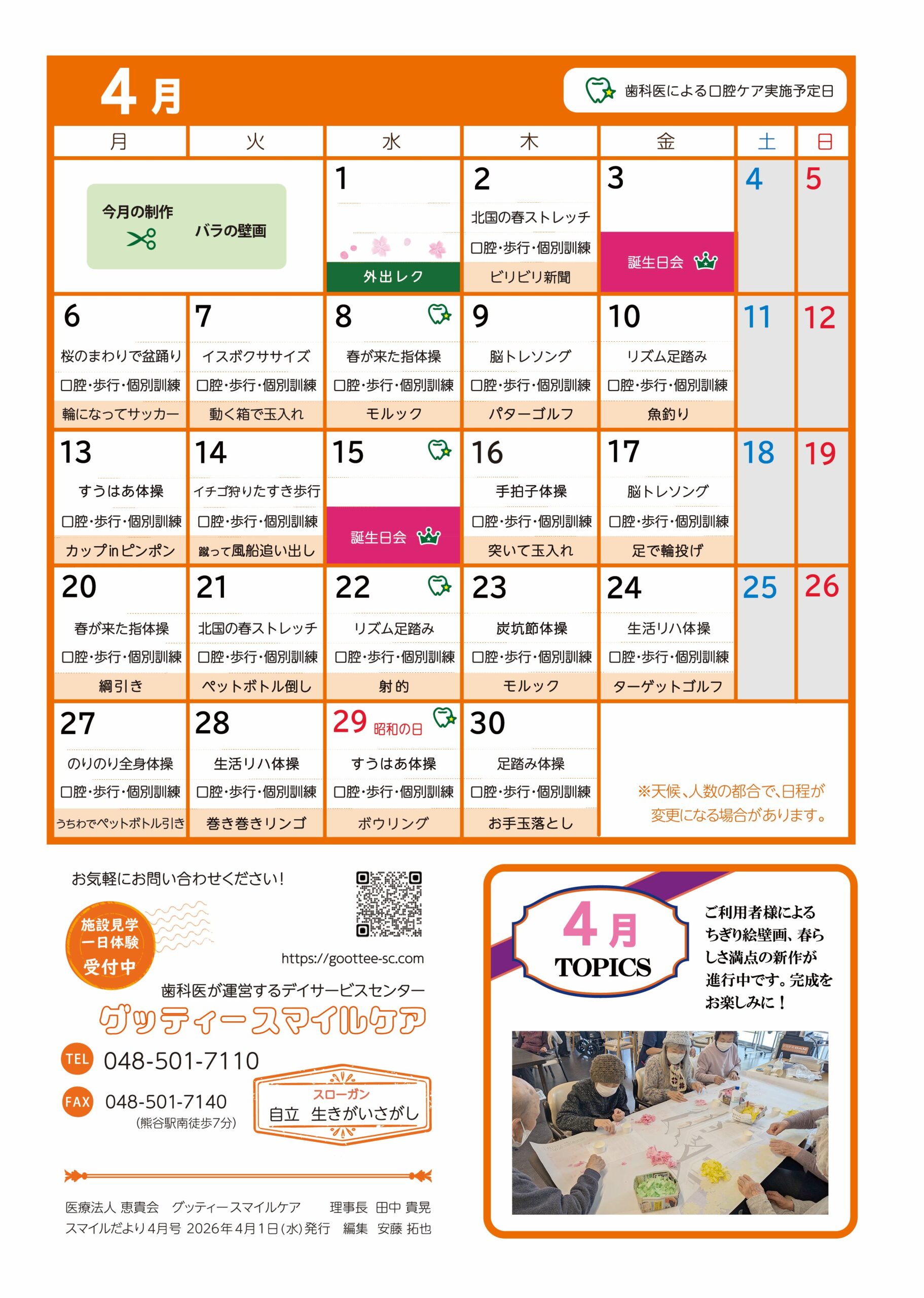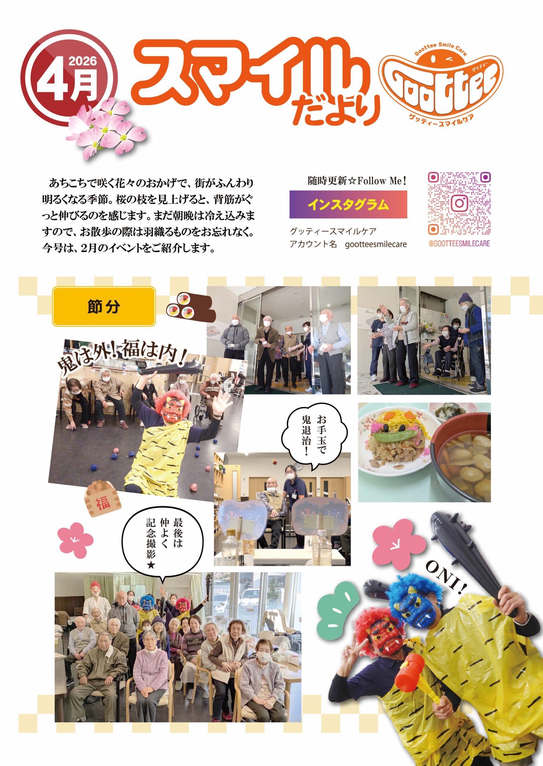スマイルだより4月号は、2月の様子をご紹介。楽しそうな様子や、穏やかな時間の流れを感じてください。